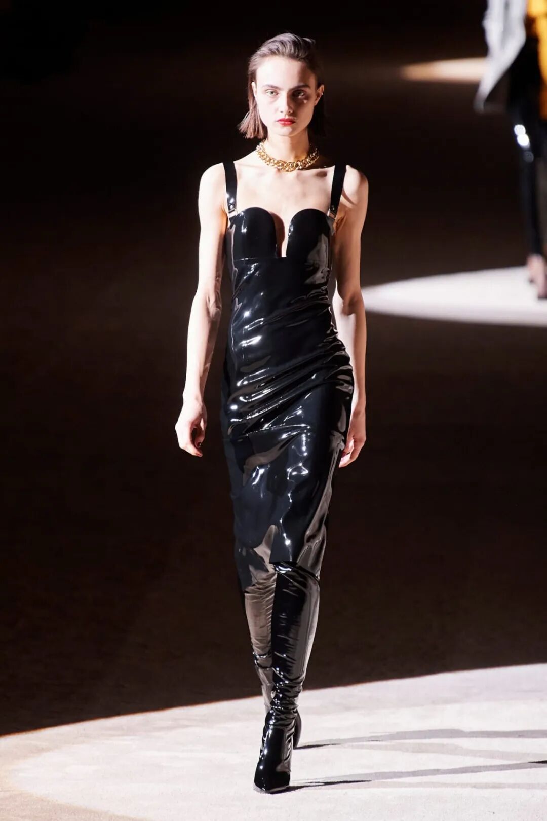 塑造了性感、危险又叛逆的90年代夜巴黎女孩,作为贯穿整个系列的“乳胶材质“功不可没!
