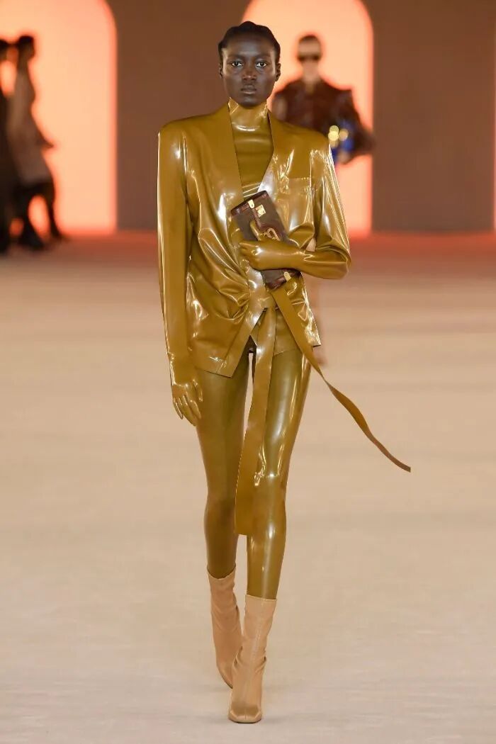 SAINTLAURENT圣罗兰创意总监Anthony Vaccarello以大胆的色彩、紧身乳胶衣这些大胆分元素,勾兑着70%的90年代的Yves SAINT LAURENT,勾出了一位危险魅惑却又端庄的SAINT LAURENT Girl。