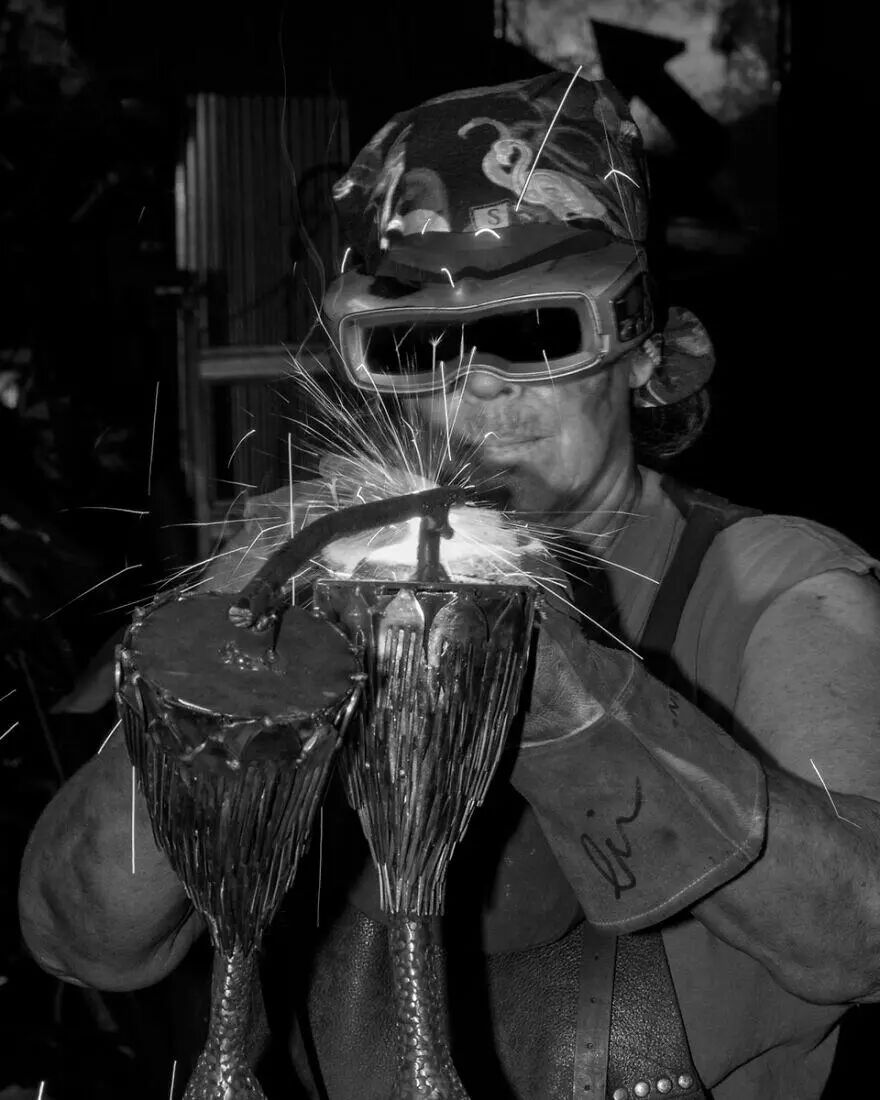 从7年前开始,辛迪·钦就成为了一名职业之艺术家,从事雕塑创作也出于个人的爱好,制作的金属雕塑作品,也非常具有想象力,而这只由大量餐具组成的金属鹤,则是她对过去长时间创作的一次总结。