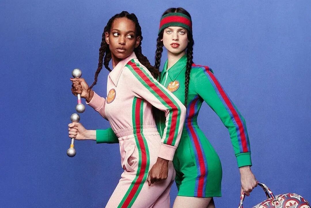 Gucci创意总监Alessandro Michele为该系列男女装注入了复古气息,将廓形、大胆的色彩,象征着adidas及街头文化的三叶草标志与三条纹设计,以及Gucci经典互扣式双G图样、马衔扣、绿红绿织带以及双G标识材质于联名系列中相互融合,重塑复古运动型格。