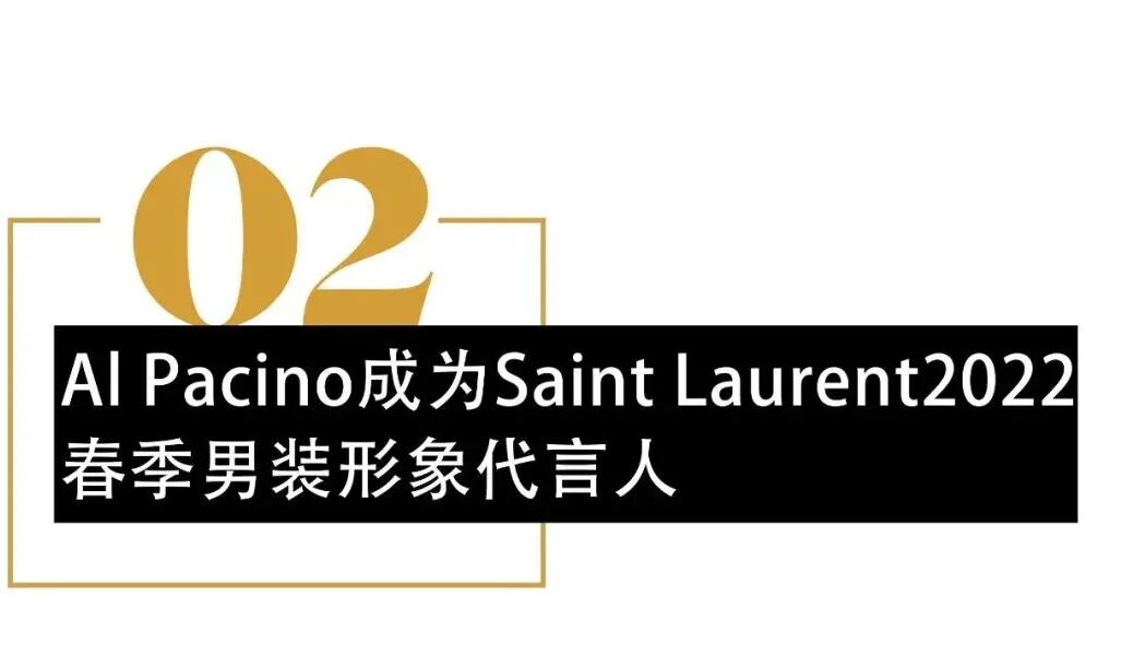 81岁的奥斯卡影帝Al Pacino近日出镜Saint Laurent2022春季男装形象广告大片,并成为Saint Laurent2022春季男装系列代言人。身穿2022春夏季男装,黑白质感大片下,Al Pacino依然魅力不减当年。