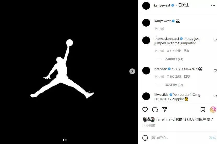 继Ye于上月通过Instagram发布了一张Jordan Brand标志性的Jumpman Logo,并附上一张Michael Jordan儿子Marcus Jordon声称将牵线,让Ye与他父亲再次合作的新闻报道截图后,针对Ye是否将会再次牵手Nike,与旗下的Jordan品牌推出合作系列的讨论变得热火朝天。