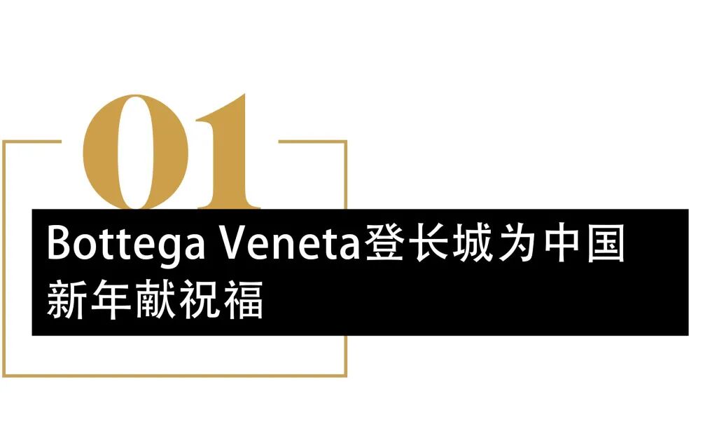 Bottega Veneta近日现身长城,为即将到来的中国农历新年献上祝福。「新春快乐」的祝福语以巨型电子横屏呈现,寓意吉祥的鲜橙橘色与Bottega Veneta经典绿色组合,传递节日情绪。