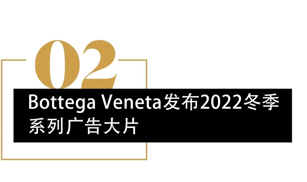 Bottega Veneta日前正式发布2022冬季系列广告大片。该广告大片是创意总监 Matthieu Blazy在Bottega Veneta揭晓的首个系列大片,透过多位摄影师、摄像师和模特的多元化视角,呈献独特美学魅力。