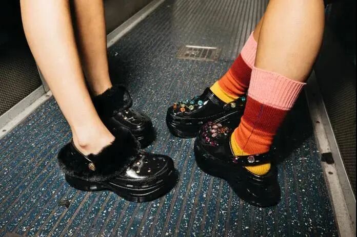 洞洞鞋品牌Crocs日前宣布将与英国时尚品牌Kurt Geiger合作推出限量版节日派对系列。据悉,该系列共包含两款鞋履,均是在Crocs著名木底鞋的基础上进行重新设计。一款鞋款采用人造毛皮饰边设计,另一款则采用厚实的彩虹色水晶。