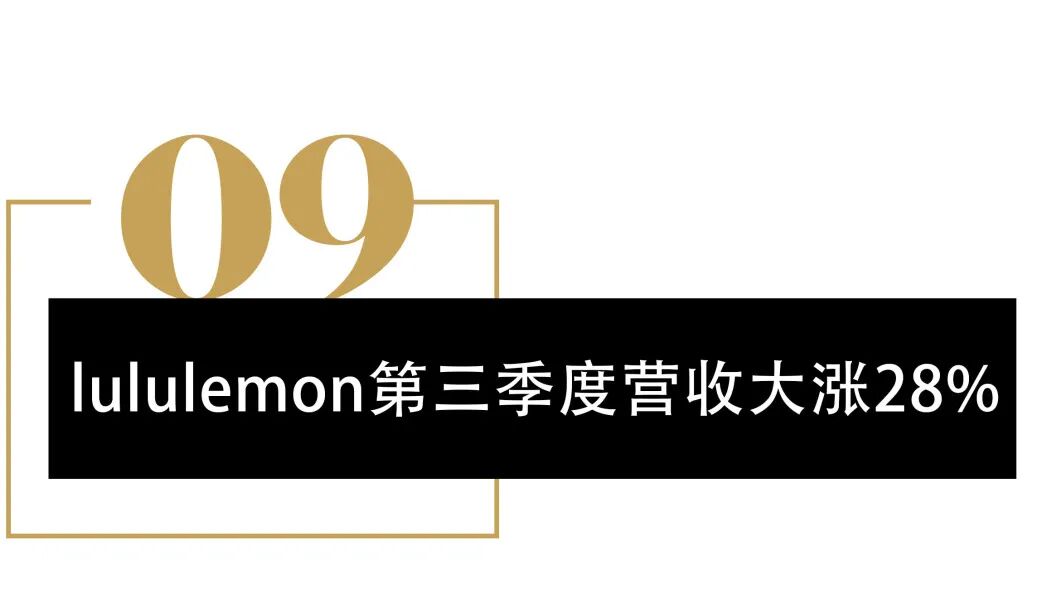 lululemon周四公布第三季度业绩数据,其销售额同比大涨28%至19亿美元,可比销售额增长22%,较2019年同期大涨103%,三年复合增长率为27%,毛利率为55.9%,营业利润大涨37%至3.52亿美元。