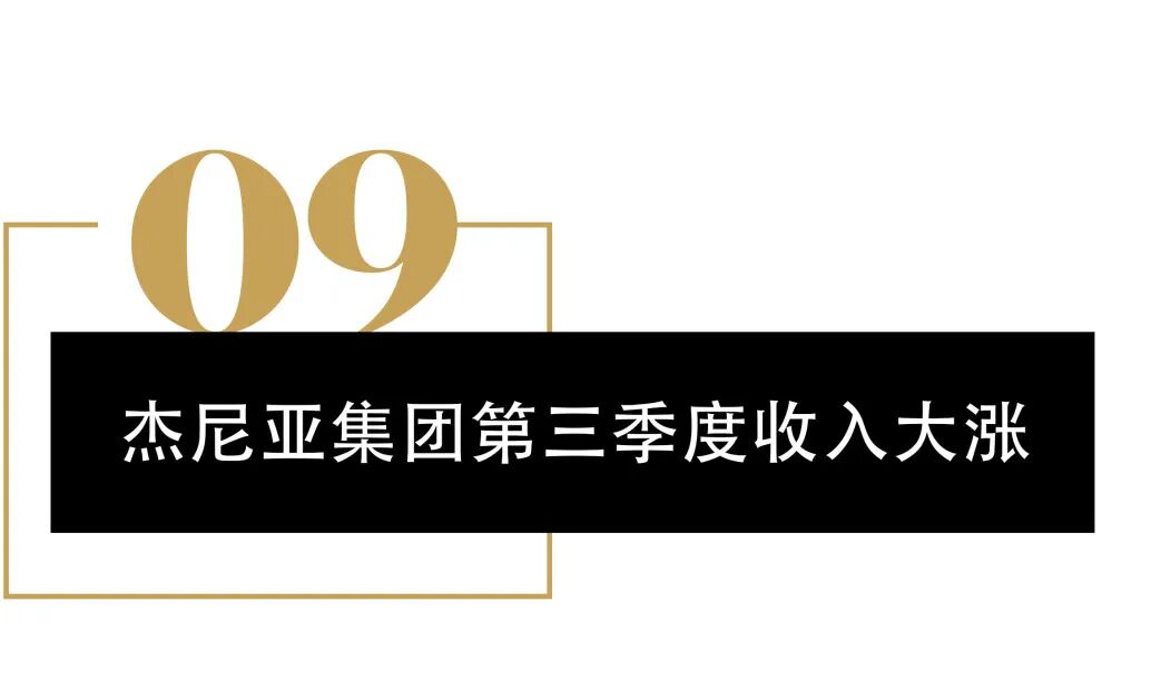 在截至9月30日的三个月中,杰尼亚集团收入同比大涨27.5%至3.57亿欧元,前九个月的销售额大涨近23%至10.9亿欧元。