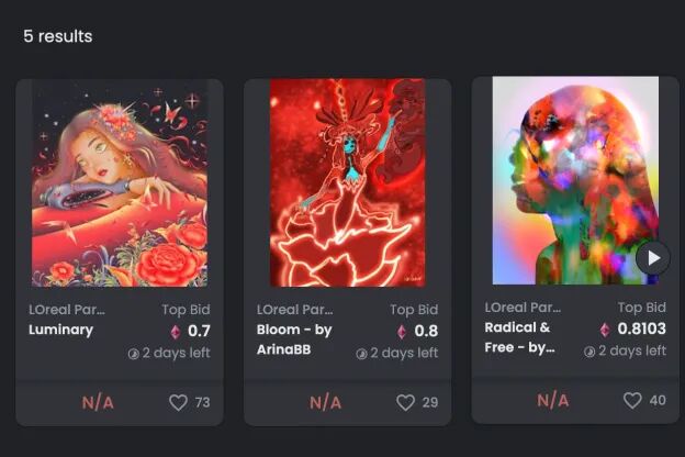巴黎欧莱雅日前委托Amber Vittoria、Arina BB、Hueman、Lili Tae和Puks 5位艺术家为新款口红Reds of Worth创作NFT艺术品,Reds of Worth NFT可通过OpenSea平台拍卖获得,每个NFT的最低起价为1500美元约合人民币9600元,所得收入将归艺术家所有。