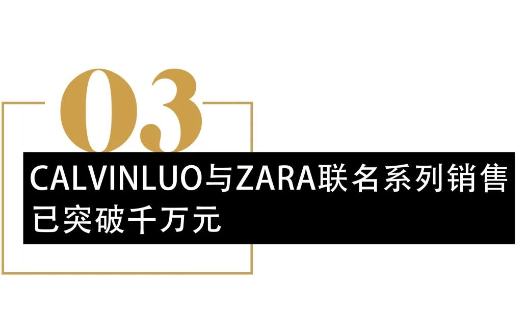 据数据统计,ZARA于1月11日正式发售与中国设计师品牌CALVINLUO的联名系列,多款产品在当天就出现断码,目前累计销售额已突破千万元。