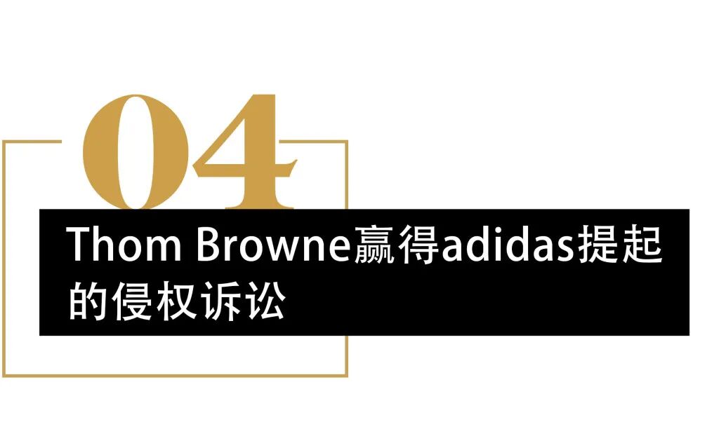 adidas与Thom Browne之间的条纹商标权纠纷案于上周四开庭,陪审团裁定奢侈品牌设计师Thom Browne无需为销售四条杠产品或其标志性的红白蓝条纹商标所产生的损害或利润承担责任。