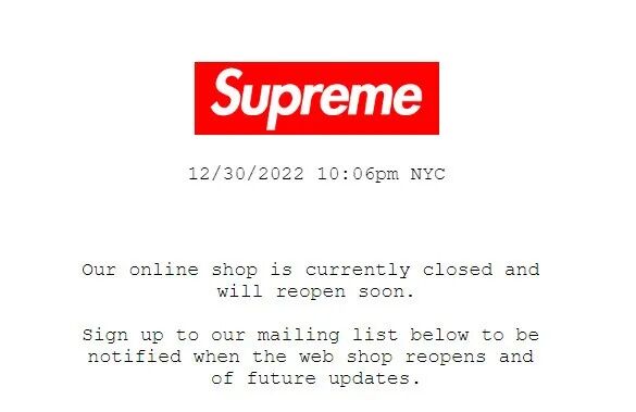 美国潮流品牌Supreme官网在2022年秋冬系列发售最后一周前夕突然关闭,并挂出维护通告,引发广泛关注。有业内人士透露,Supreme 2022秋冬系列中还有6款单品未上架。
