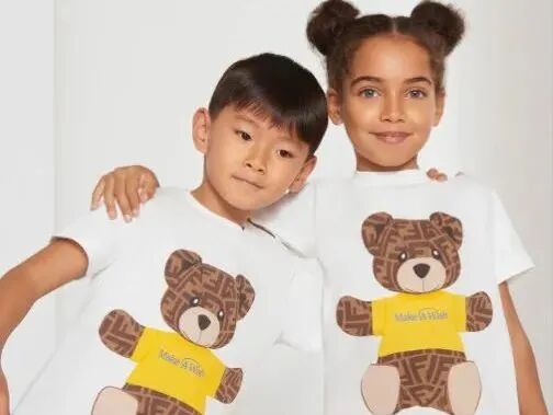 Fendi设计一款特殊的男女可穿的T恤作为儿童线的一部分。这款白色的T恤,适合婴儿以及14岁以下的男孩女孩们。在T恤衫上,印着一只穿着黄色衣服,并有着Make-A-Wish组织logo的棕色泰迪熊。