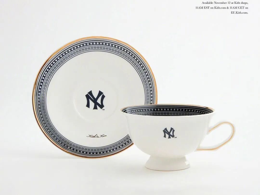 近日,KITH携手潮牌MLB打造了餐具的合作系列,以纽约洋基队和纽约大都会队的标志性配色及Logo为主题,共设计了包含咖啡杯碟、玻璃杯、陶瓷杯、球队徽章等品类的单品,整体造型复古又别致。