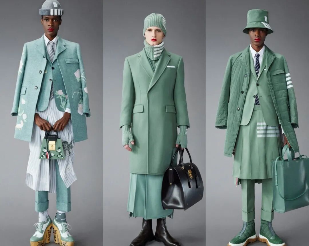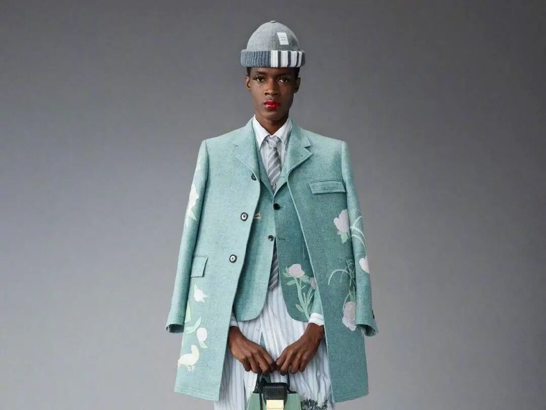 在新系列中的lookbook中,可以看到品牌主打以暖鸽灰和薄荷绿色调。西装、百褶直筒裙、排扣运动夹克等单品显得清新雅致,而且在本季设计中出现了各种龙虾元素,让正装单品充满了别致与趣味性。