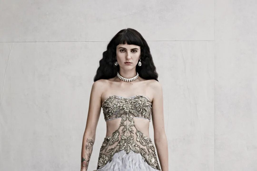 Alexander McQueen日前正式发布2023早春女装系列,从超自然、夜空和宇宙中汲取灵感,通过对剪裁的剖析、解构与重建精妙展示,以柔美色彩辉映夜幕闪耀光芒。