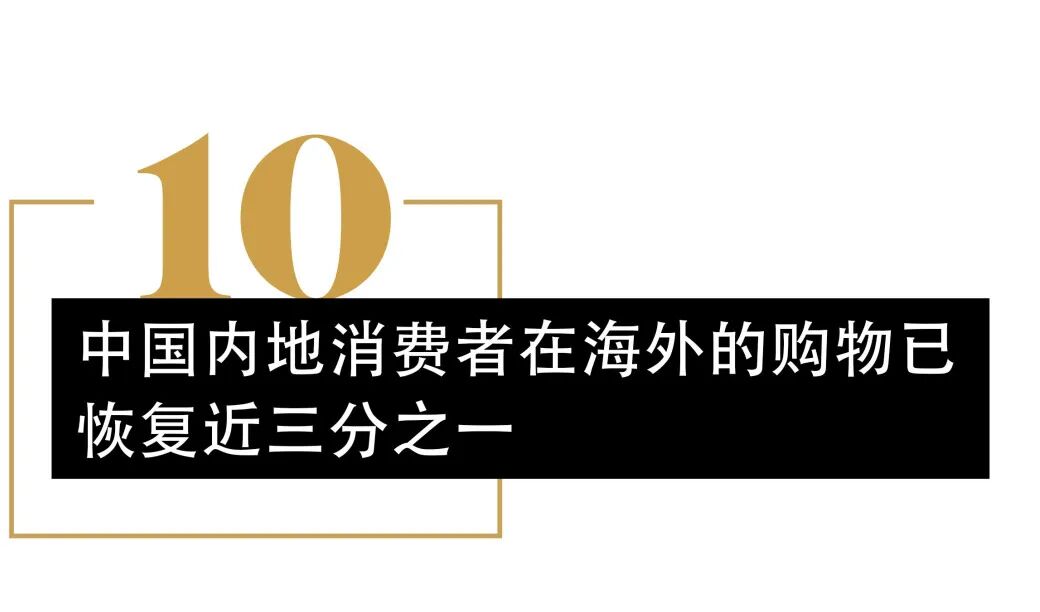 该报告续指,自1月以来,中国内地购物者在海外的购买力一直在稳步改善,在欧洲大陆地区消费的恢复率为22%,在亚太地区消费的恢复率为27%。剔除中国春节的季节性影响,中国内地购物者在欧洲大陆和亚太地区的恢复率分别为33%和35%。