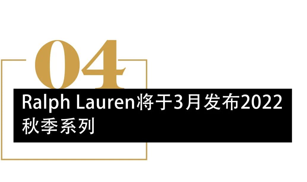 Ralph Lauren日前宣布将于3月22日在纽约举办一场线下时装秀,展示其2022秋季女装系列和男装Purple Label系列,具体地点尚未公布。