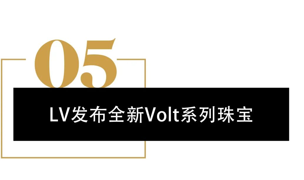 Louis Vuitton日前发布全新LV Volt系列精品珠宝,由品牌腕表和珠宝艺术总监Francesca Amfitheatrof设计,共有67款作品,包含手镯、项链、戒指、耳环、胸针等单品,采用白金、黄金、钻石三种材质打造。据LVMH透露,Louis Vuitton去年收入首次突破200亿欧元,创历史新高。