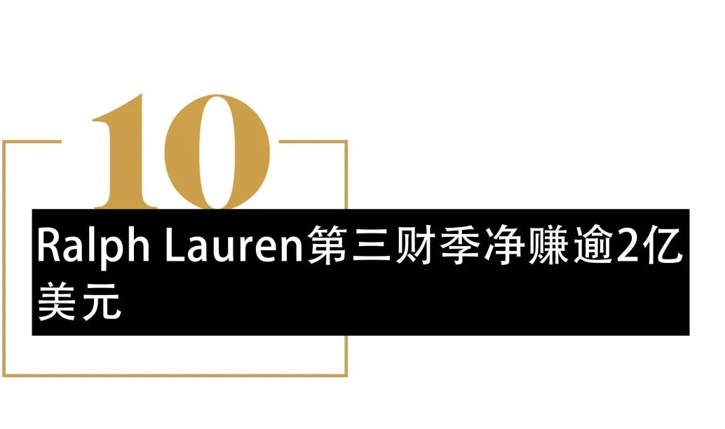 美国时装品牌Ralph Laure在截至去年12月31日的第三财季业绩显示,营收同比增长0.9%至18.3亿美元,净利润同比下降0.6%至2.165亿美元。报告期内,Ralph Lauren北美市场营收同比增长1%至9.38亿美元,欧洲市场营收同比增长1%至4.69亿美元,亚洲市场营收也录得1%的增长至3.86 亿美元。