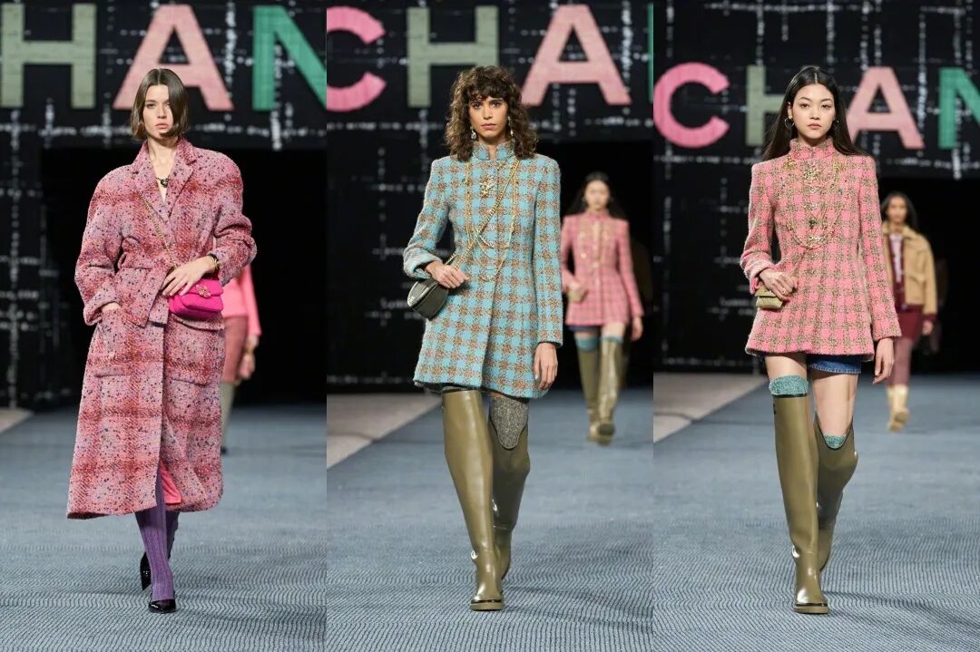 Chanel2022秋冬系列发布,Virginie Viard以整个系列向斜纹软呢致意。秀场上浅褐色的座位、浅绿色的T台让人仿佛身处苏格兰郊野,跟随Gabrielle Chanel的脚步,沿着特威德河,探寻斜纹软呢描绘的世界。