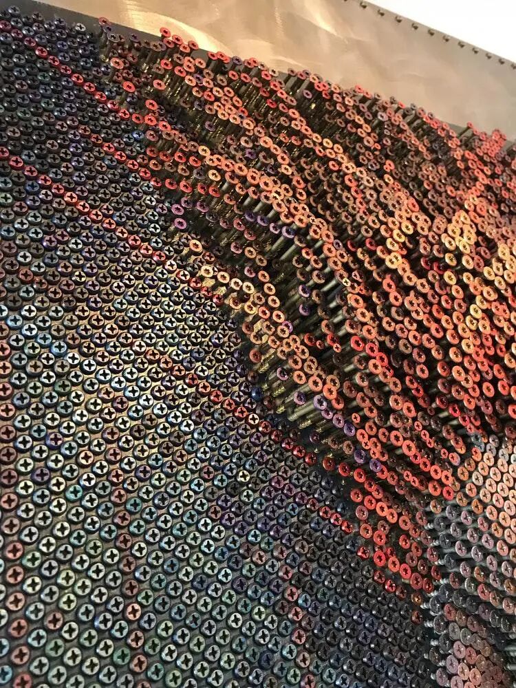 今天要介绍的这位艺术家也很特别,他的创作与“红酒塞”画家有异曲同工之妙,只不过更加硬核,因为他选择的材料是更有重量感的金属螺丝钉。布鲁斯·麦克利是一位艺术家,他自称“白日梦想家”:“对我来说,创造力就像洪水一样,它不可预测,但是无处不在,有时候它来势汹汹,这个时候,你只需勇敢地迎接它的到来。始终对世界保有好奇心,因为世界是惊人的”。