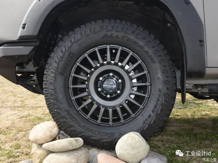 新车采用了规格为275/65 R17的倍耐力蝎子全地形越野轮胎以及氮气减震器,密辐枪灰色轮圈的样式也是十分冷峻。此外,它还配有带铆钉样式的黑色轮眉,以增强野性韵味。