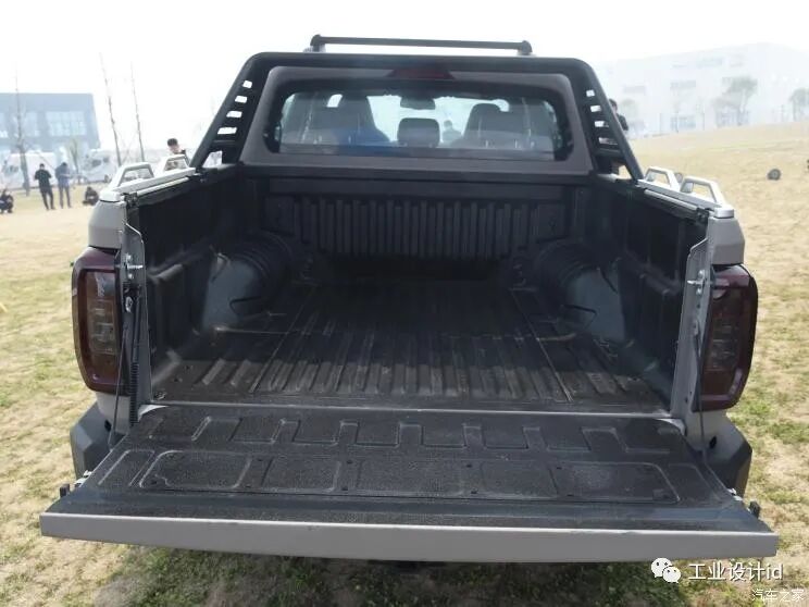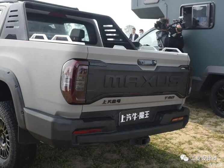 尾部的造型个性十足,尾门上大面积的黑色宽幅饰板上印有“MAXUS”的英文标识,并与尾灯巧妙结合,下方同样配有金属材质的竞技后保险杠。