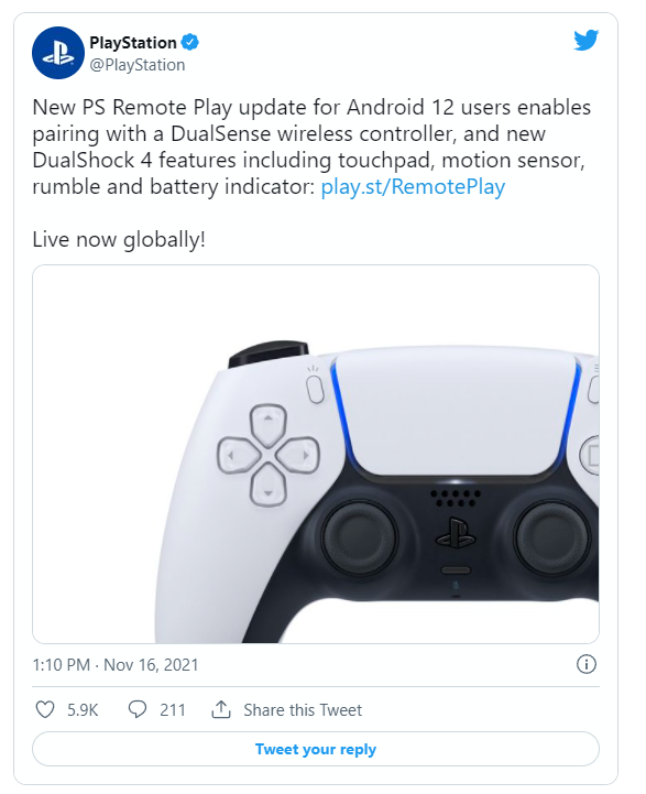 在为iOS添加PS遥控操作应用近6个月后,针对安卓12的PS遥控操作应用正在更新,以支持PS5 DualSense手柄。新的更新还增加了一些与PS4的DualShock 4控制器的兼容性方面的改进,但仅适用于Android最新版本的用户。