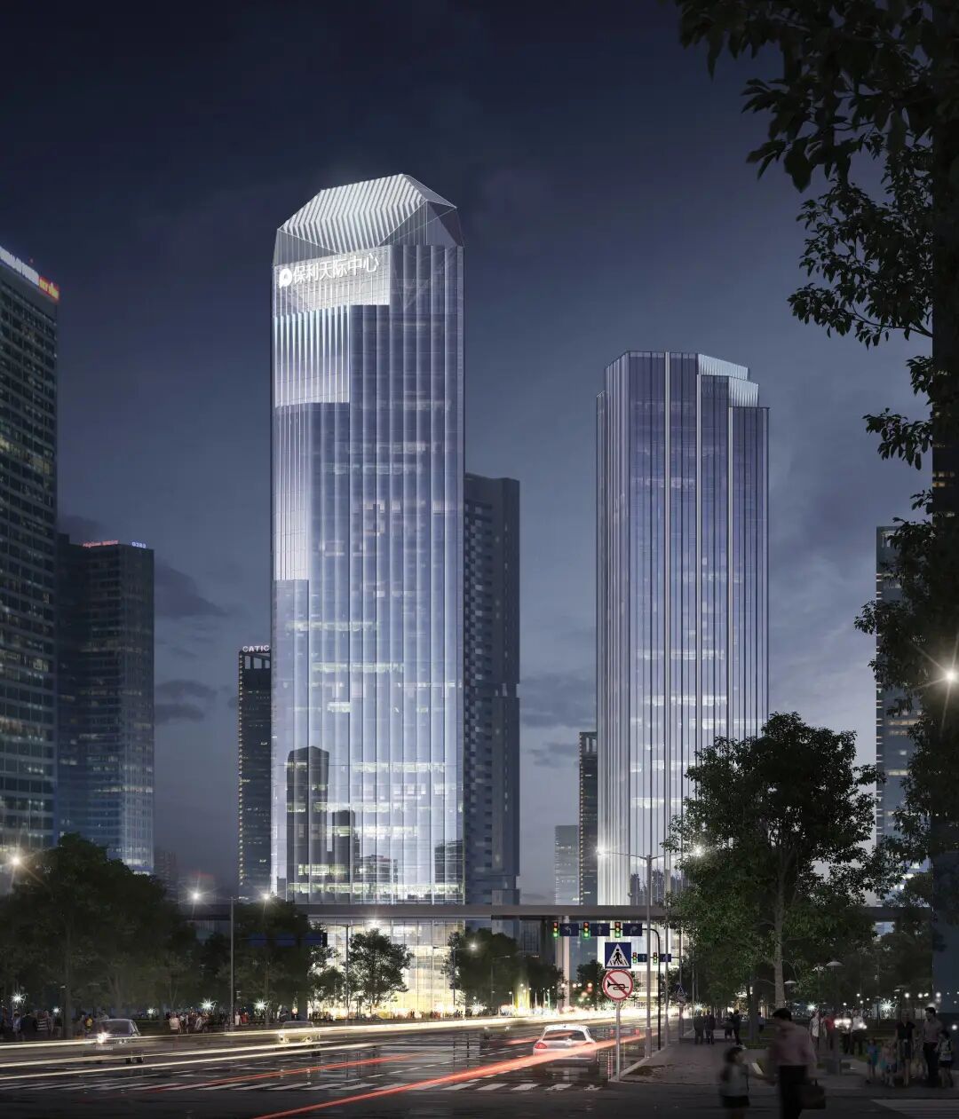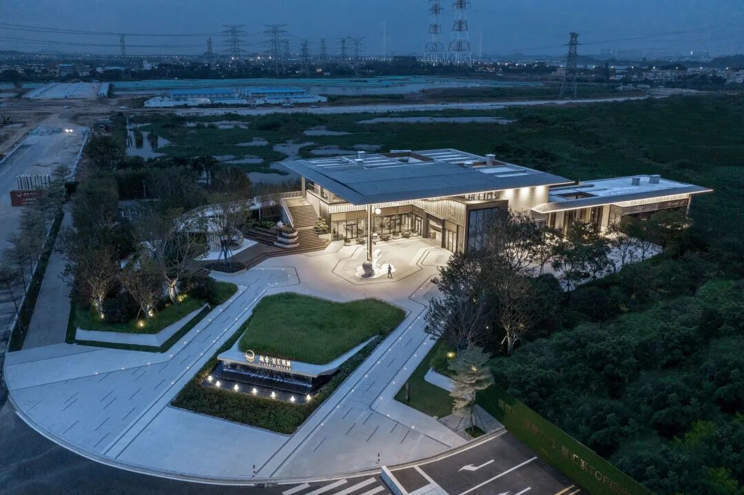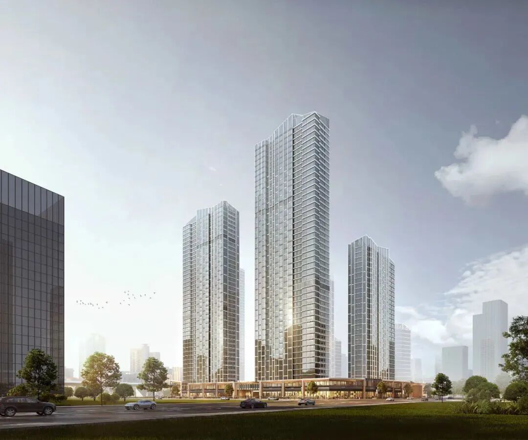 建筑利用超级悬挑钢结构雨棚构成超级社区的城市“负”空间,形成公园互动体验剧场式的超级社区,丰富健康生活。立面采用弧形格栅+幕墙,实现视觉上的流畅感与通透感,让建筑由实到虚过渡,通过雨棚形成的”灰空间“与大自然融为一体。
