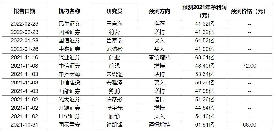 据同花顺财经显示,2月23日,金龙鱼新增2家机构对其2021年度业绩做出预测。目前,共累积13家机构,其中,6家机构“增持”,4家机构“买入”,1家机构“推荐”,1家机构“审慎增持”,1家机构“谨慎增持”。