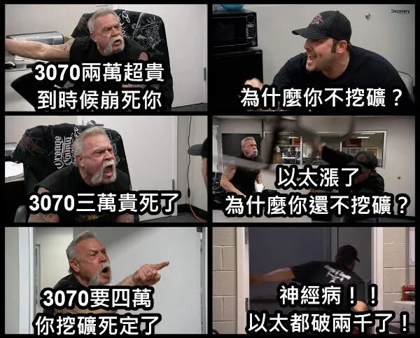 矿老板们回头一看,嘿,我们买显卡挖矿赚一笔,还把显卡抬涨价了,转手高价二手卖给那帮臭打游戏的,等于白嫖人家的显卡挖矿,赢麻了!