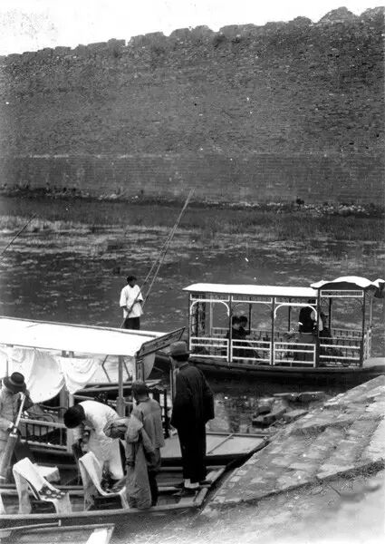 游客正准备登船游玄武湖。(摄于1930年代,日本亚东印画辑)
