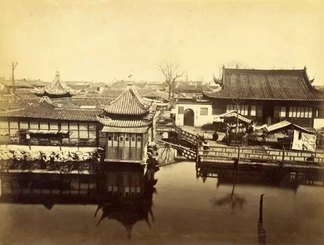 晚清时期,秦淮河畔的茶酒楼,也是当时南京城的娱乐中心。(摄于1880年代,秦风老照片馆收藏)