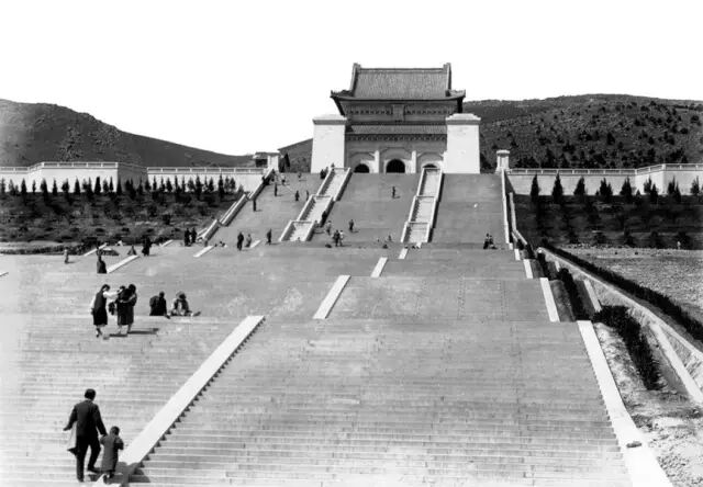 南京中山陵刚建成的时候,三三两两的拜谒人数虽然不多,然而此地逐渐成为南京的重要新地标,也是中华民族精神的象征。(摄于1930年代,日本亚东印画辑)