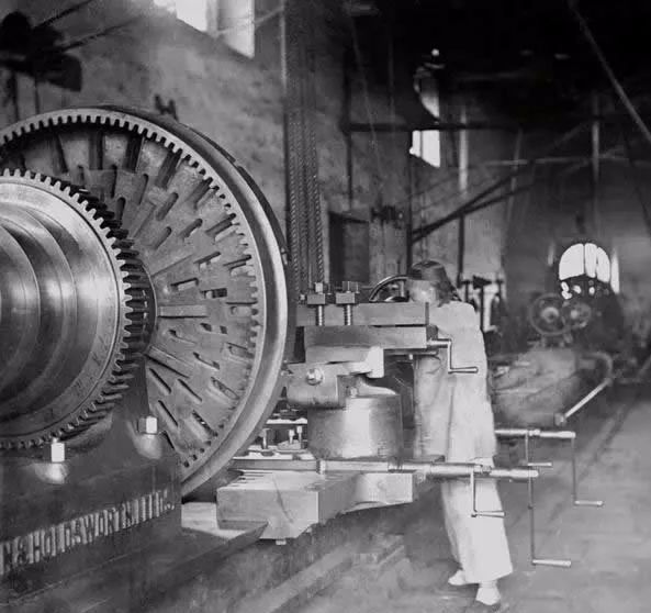 图为金陵机器制造局的车间。同治四年,李鸿章代理两江总督,治所南京。在南京在聚宝门(今中华门)外扫帚巷东首西天寺的废墟上修建厂房,创办了金陵机器制造局。