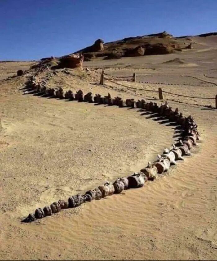千万年前埃及还是一片海洋,这局鲸鱼骨架在埃及的沙漠中保留至今。