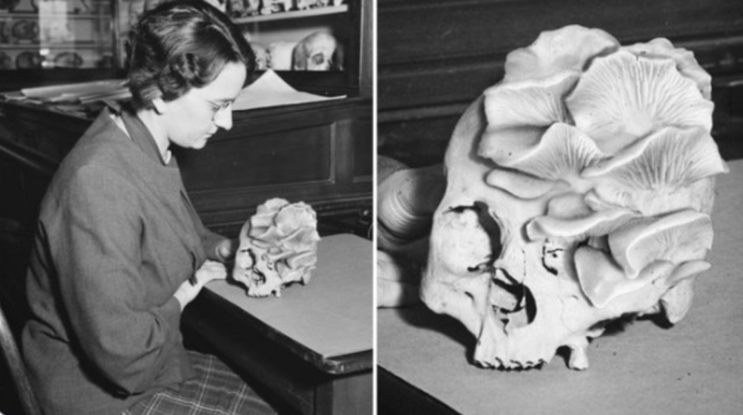 海勒博士正在检查一个1806年,菌丝体感染的受害者的颅骨,这场流行病摧毁了法国南部的一个村庄。真菌生长到骨骼中,形成骨化结构从皮肤中分离出来传播孢子,就好像冬虫夏草一样,让人细思极恐。