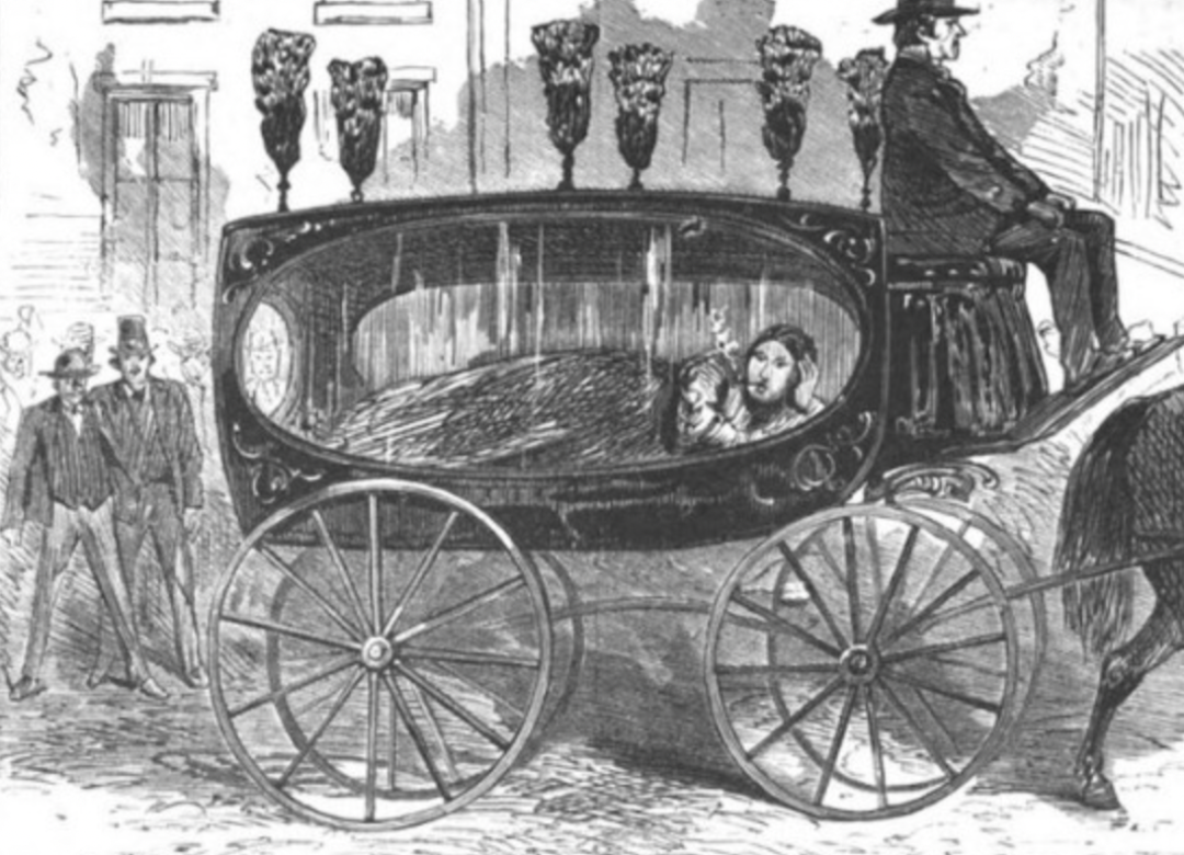 1871年,一位来自魁北克的妇女租了一辆灵车,这样她可以一边在棺材床上吸烟,一边欣赏风景。