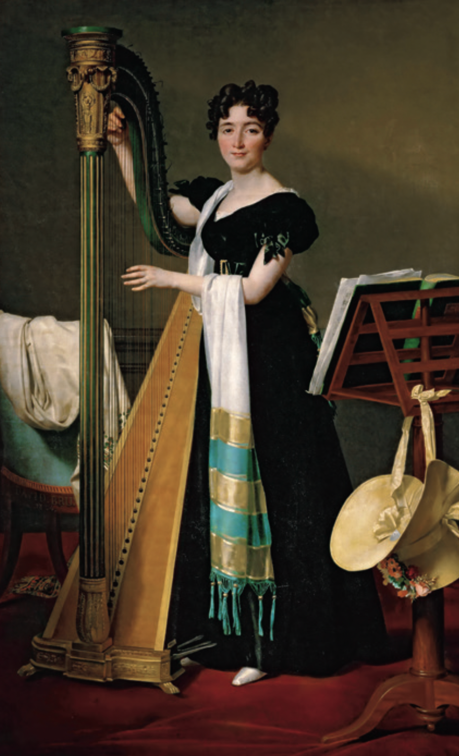 大卫着力表现朱丽叶精致的脸庞,也乐于呈现背景里的诸多元素,包括华丽的竖琴和桃花心木乐谱架。这幅肖像画之所以成功,完全是因为大卫在作画时明显感受到了画中人物的愉悦之情。