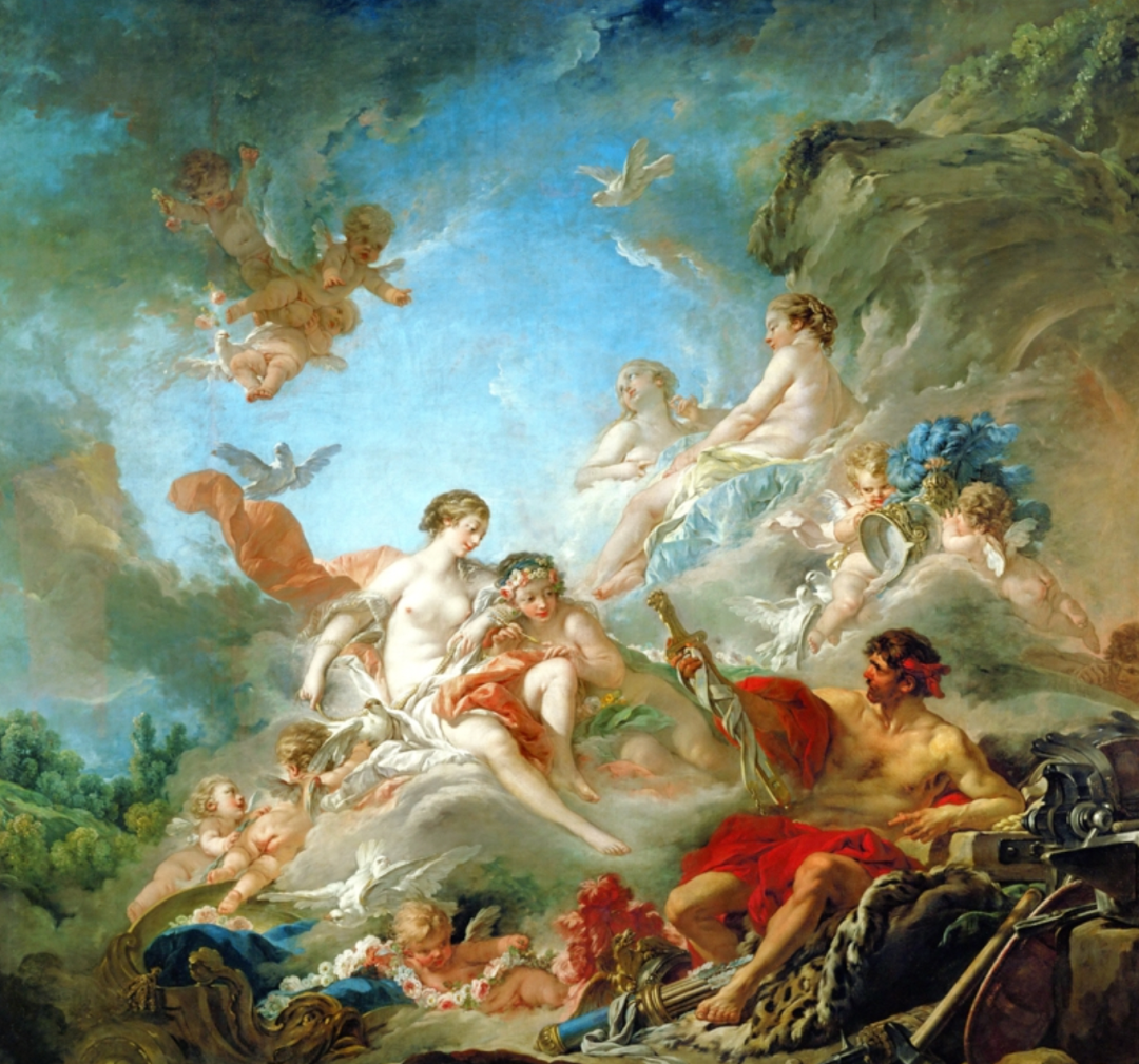 弗朗索瓦·布歇《伏尔甘给维纳斯看为埃涅阿斯打造的兵器》,这是当时较为流行的古典主义画作的风格。图\网络