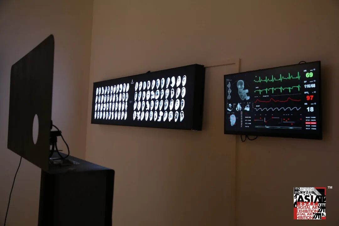 作品《胎耳》,是一个基于虚拟生物智库系统下的实验性交互装置。摄像头拍摄参与者的耳朵,运用图像识别技术提取特征,与作品创建的数据库进行匹对生成初始胎儿,结合交互测试结果,最终会生成专属于参与者物质生命下的,意识形态所产生的虚拟生命——胎耳。