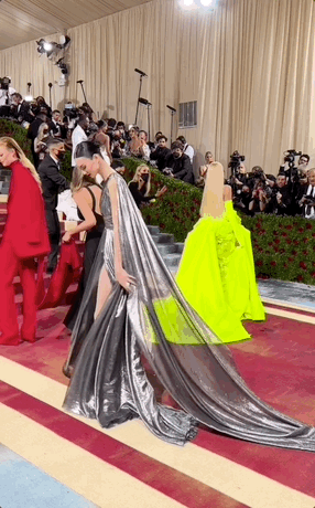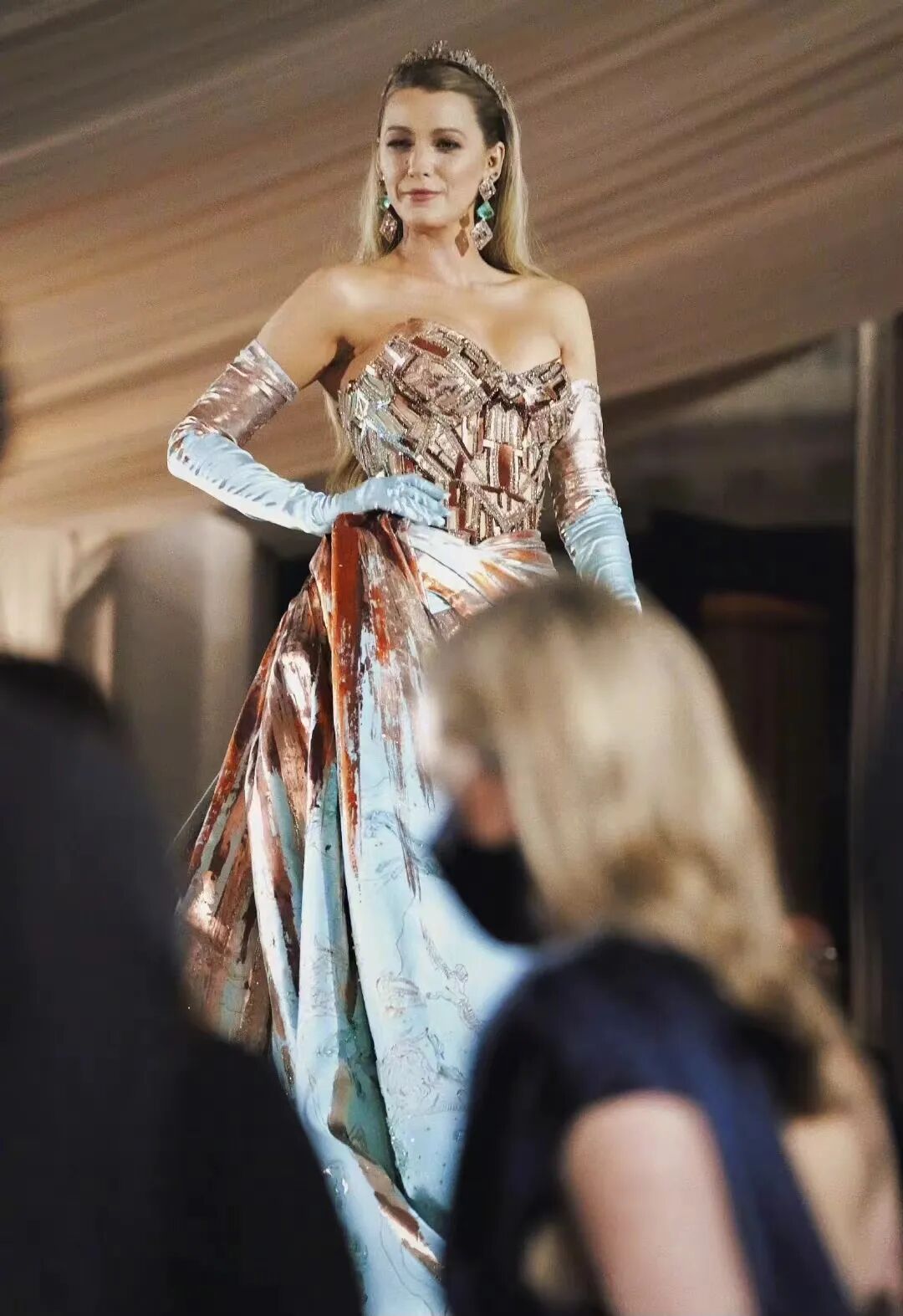 MET Gala今天Blake Lively这件Versace把纽约的街景穿在了身上,细节的是,这件Versace经“拆解”后,腰间蝴蝶结拆开即刻变装,又变成了曳地的长礼服。