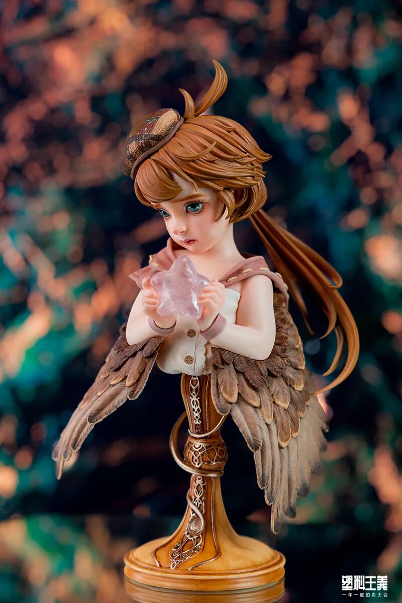 《STAR》是莱福特第一款胸像作品,这款小巧的造型并不简单,而软的涂装则给这作《STAR》注入了别样的生命力。微张的翅膀、娇憨的表情,原木、皮革、羽毛……每处细致的材质刻画,都浓缩了两位创作者精湛的造诣。手中捧着的透明星星,则以一种微妙却不夸张的方式,勾勒出了整体宁静且克制的气质。