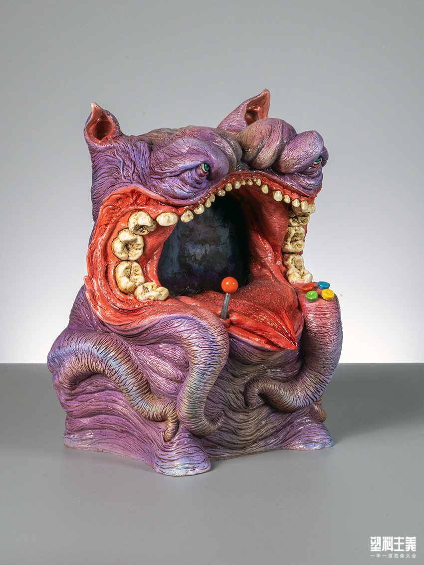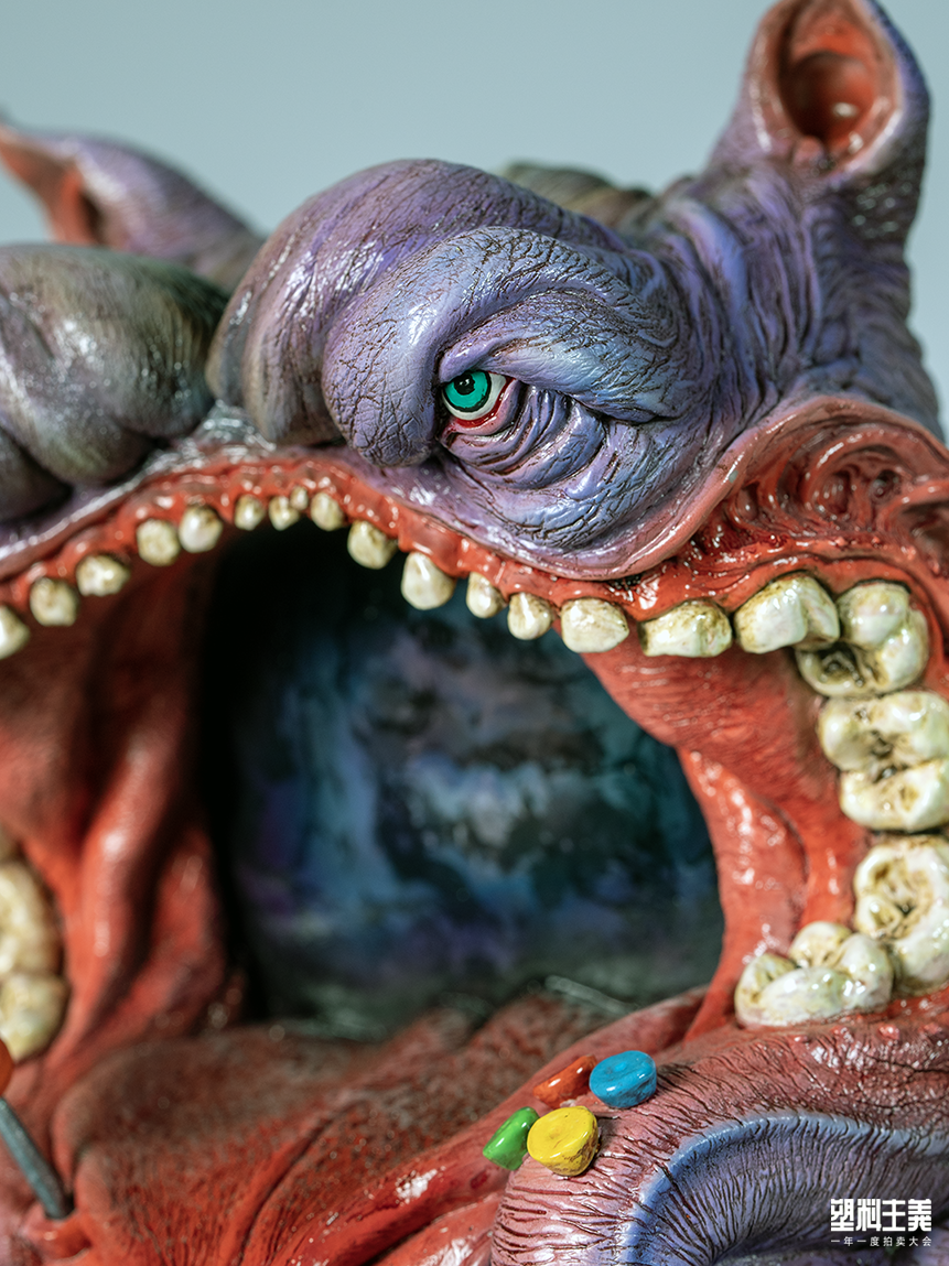 最终,涂装师无型效应完全放飞了脑海,让色彩与灵感在造型上直接碰撞刺激,得到了一个惊喜的同时意味深长的结果:一个似烈焰地狱,一个有如幽暗森林,怪物们张着的嘴里明明是来自 8-bit 时代的 tv game,却仿佛地狱之门洞开;而颗颗分明的牙齿却人畜无害地长出了摇杆与按键,仿佛玩家们一旦按下 start game,一场属于地狱的游戏便启动了。