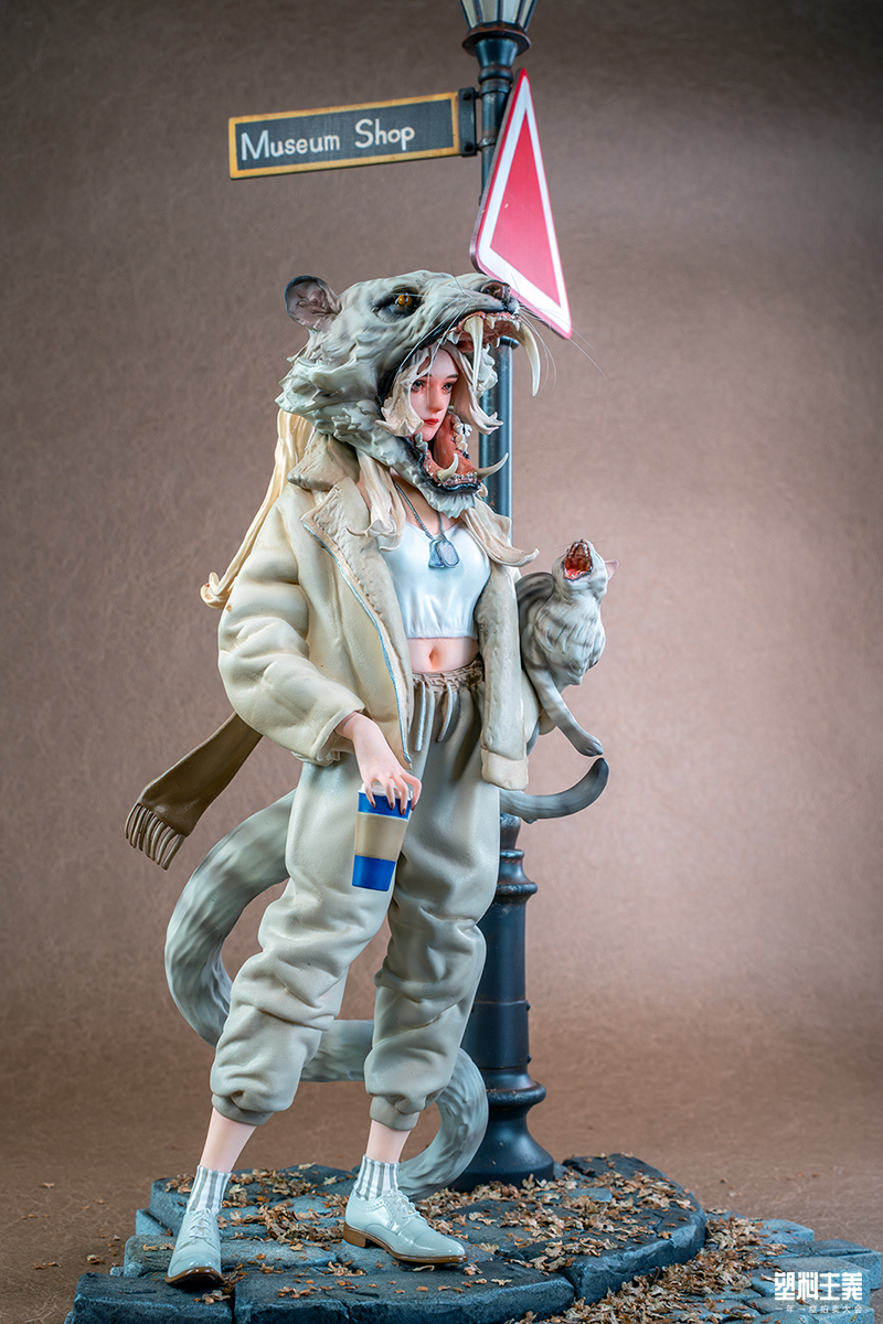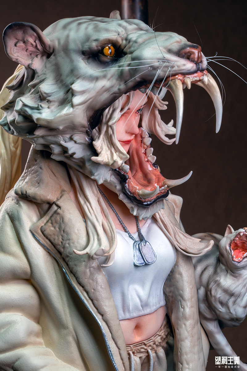 自 2020 年以《dragon mermaid》作为独立原型师身份一鸣惊人后,entei 陆续创作出了自己的个人原创系列“Fierce Girl”,她以动物与女性人形为创作动机,塑造出了一个个鲜活飒爽同时个性丰满的女性形象。其中,第二作的“虎女”则最为突出:她只是站在那儿,就仿佛自带一种“大姐大”的独特气质。
