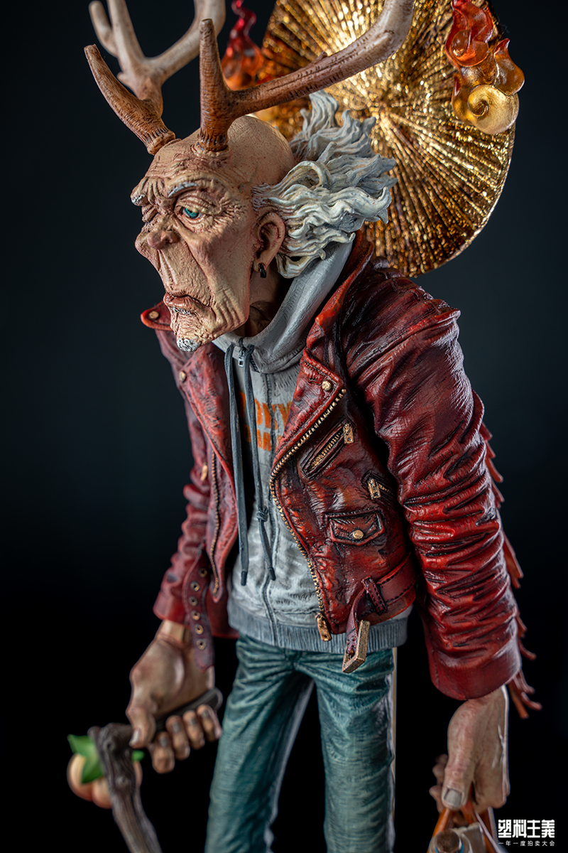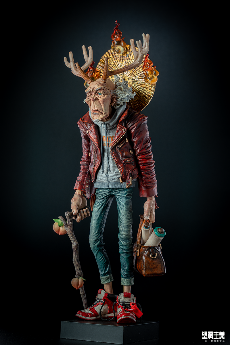 而本作《OKIMONO series01 ジュロウ》则是山下作为独立造型师的原创作品。在 2019 WF甫亮相时并不惹人眼球,却仿佛陈年老酒,随着越来越多的涂装作家的创作而焕发出愈加淳朴的魅力:street boy 风格的仙人鹿老头,这几个名词搭配起来,就不是那些“只图感官刺激”的小年轻们所能一眼相中的。