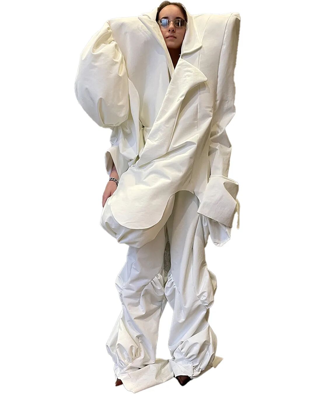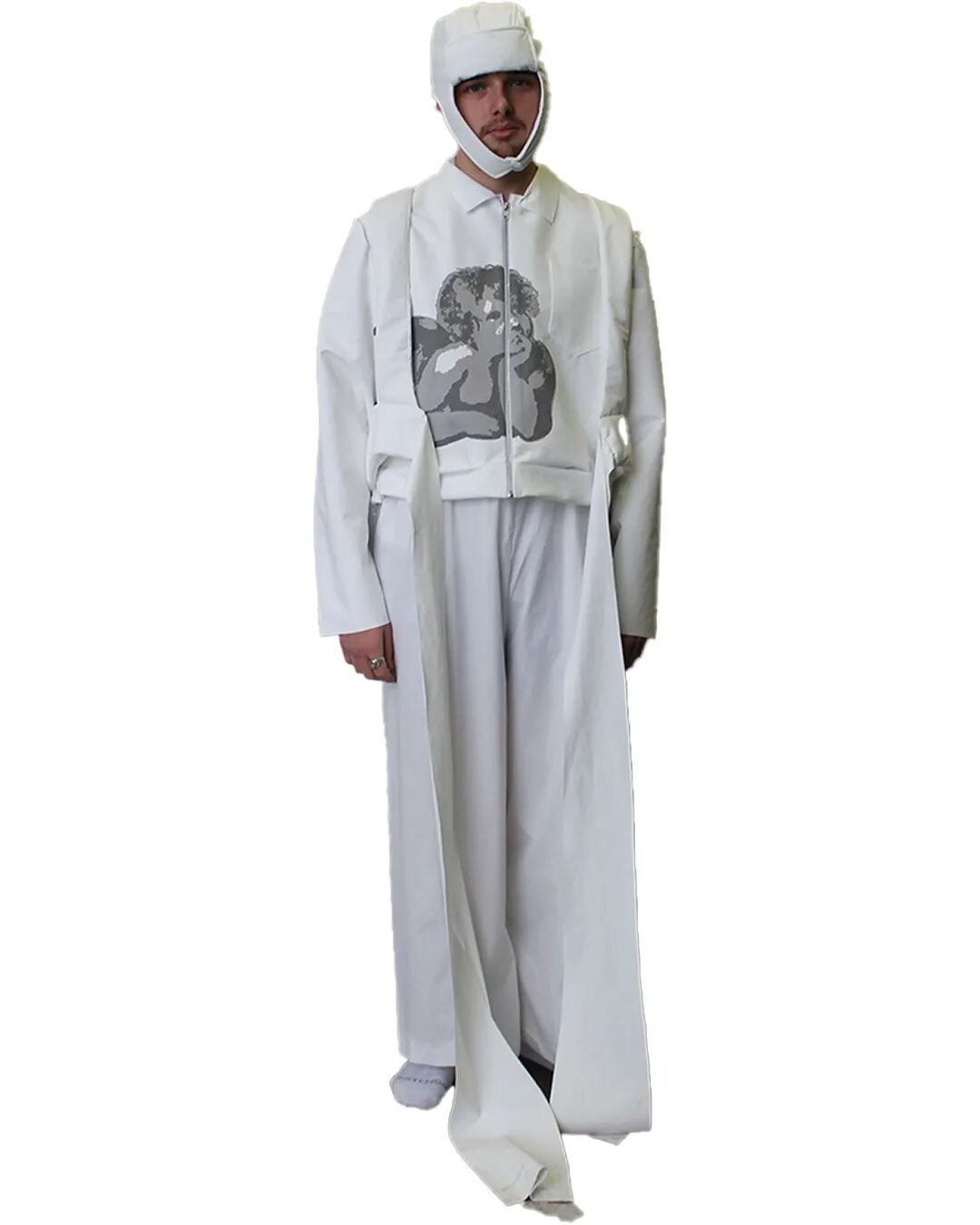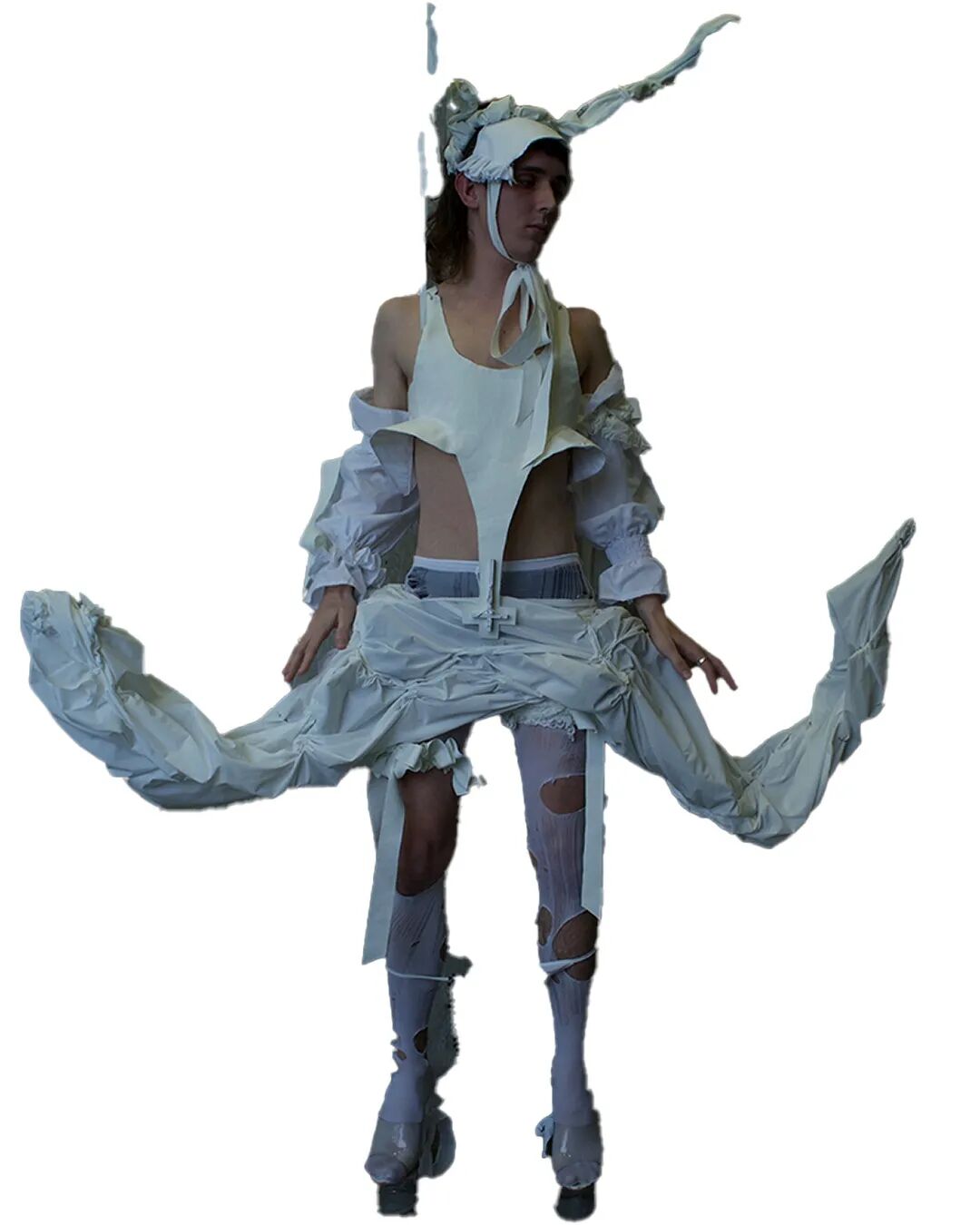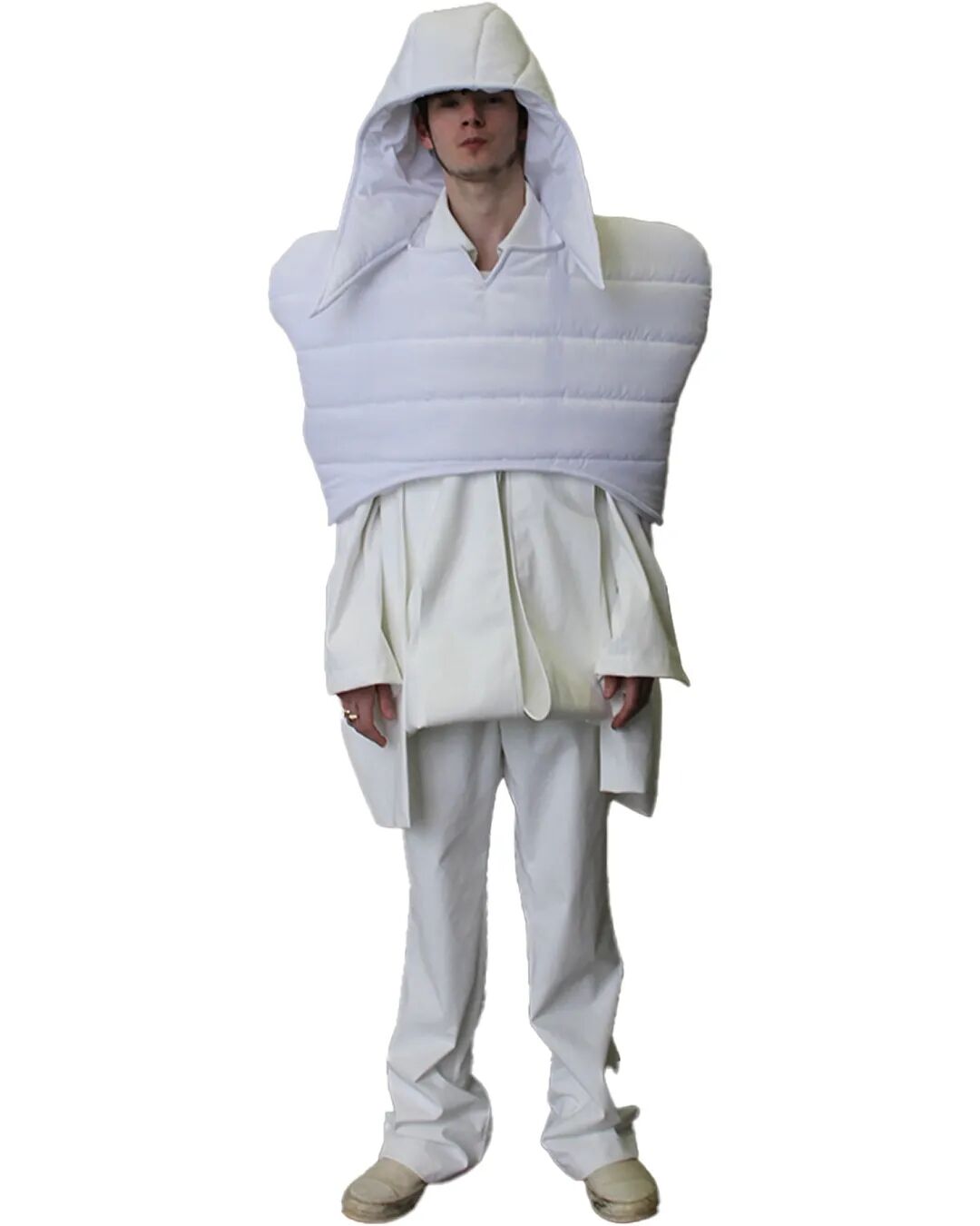 纯白的织物彷佛一张待画的白纸,又如一年级的学生一般,他们以人体为载体,勾勒着天马行空的想象。三个主题的碰撞无论是从宏观,还是微观上看都是极富意义的。