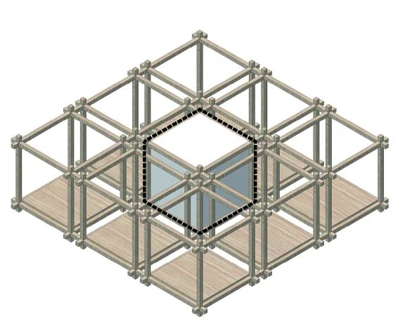 为了方便搭建与使用,我们采用了4.2m×4.2m为单元模块的立方体进行拼搭,并进行了模块化设计。