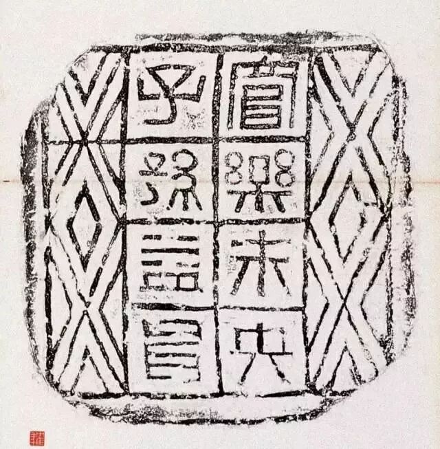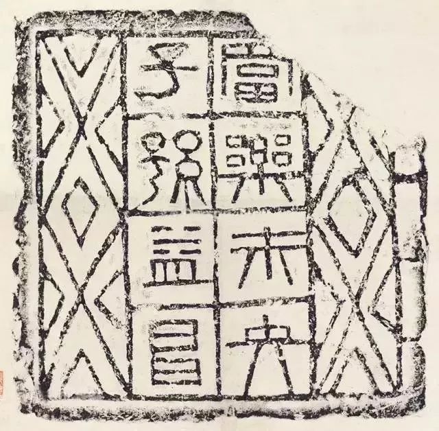 阳文缪篆,在正方的砖面中分成四格,横竖线条以等距离排列,篆法方整,各字因势又长短不一,空间协调而独具匠心,被“甲骨文之父”王懿荣在四川新繁发现,广为世人所知,当为汉代出土文字砖之王者。