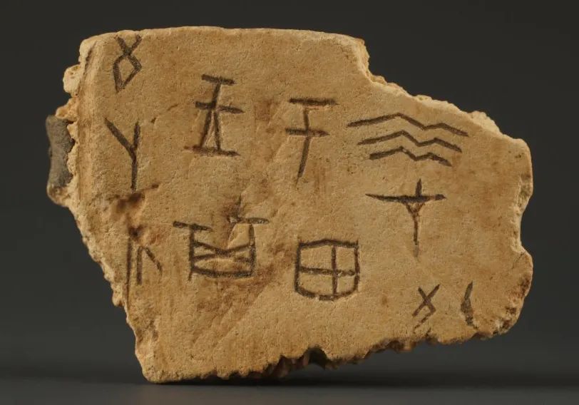 甲骨文字的线条由于受到工具材料的影响而具有特殊性。横竖线是甲骨文的主要线条元素,工具材料的硬度,使得贞人在行文奏刀时多以横竖线为主,少见圆弧,转折多断连错落,或斜线碎刀连接,易见圆中化方之势。书契者用刀的口刃薄阔、用力大小,都会对甲骨文字的线条造型造成影响。以史为序而划分的五期文字,同样衍生出五种不同的文字风格与文字结构。